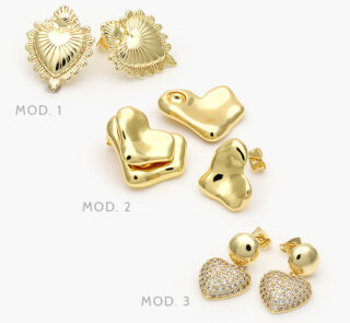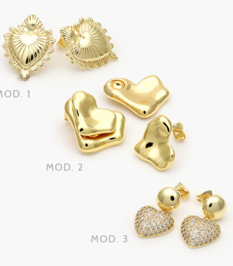 Aretes Corazones Chapa de Oro 672