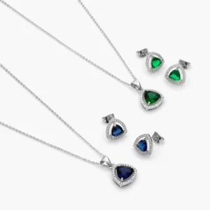 Juego Zirconia Tringular Chapa de Rodio 154