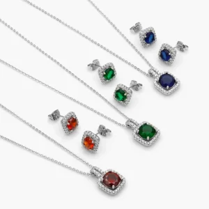 Juego Zirconia Cuadrada Chapa de Rodio 155