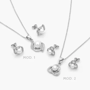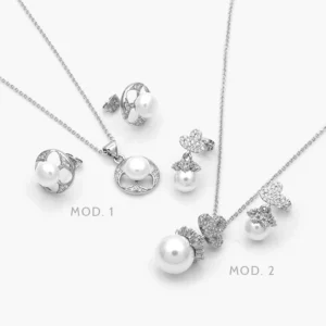 Juego Zirconia Perlas Chapa de Rodio 164