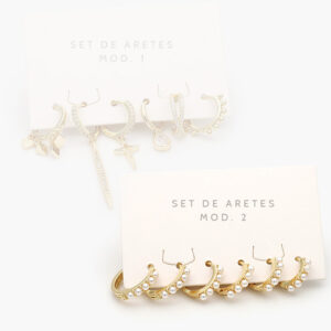 Original price was: $229.00.$68.70Current price is: $68.70.Aretes 4 pzs Chapa de Oro Flores Perlas 0088