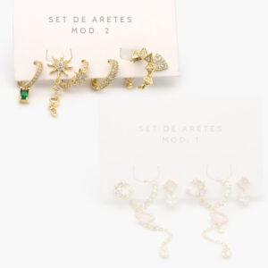 Original price was: $229.00.$68.70Current price is: $68.70.Aretes 4 pzs Chapa de Oro Zirconias 0074