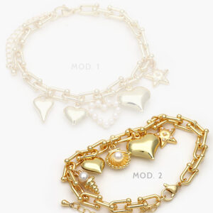 Pulso Corazones y Estrellas con Perlas Chapa de Oro 0200
