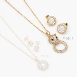 Juego Corazón Zirconias Chapa de Oro Grupo 69 Cadena de Aguja