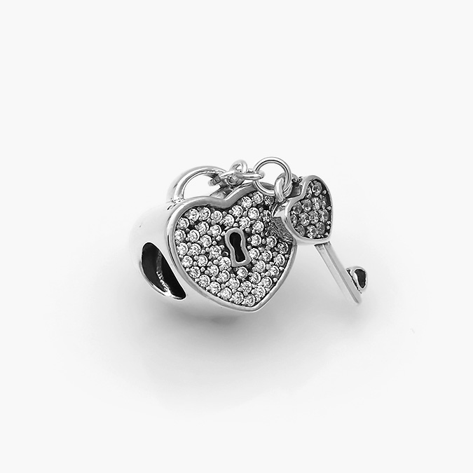 Dije Plata .925 Rodizado Corazón Candado Llave 0003
