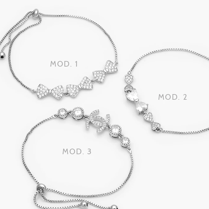 Pulso Zirconias Ajustable Micropave Chapa de Rodio 863