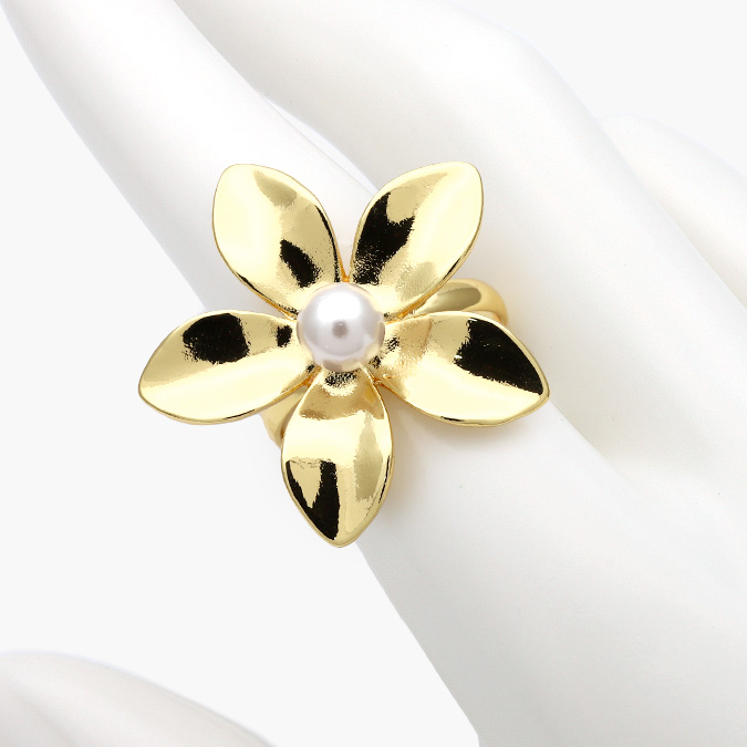 Anillo Flor Perla Ajustable Chapa de Oro 1238-2