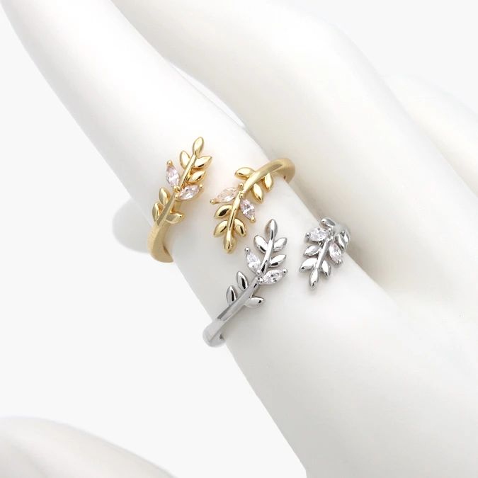 Anillo Ajustable Hojas Chapa de Oro 1337