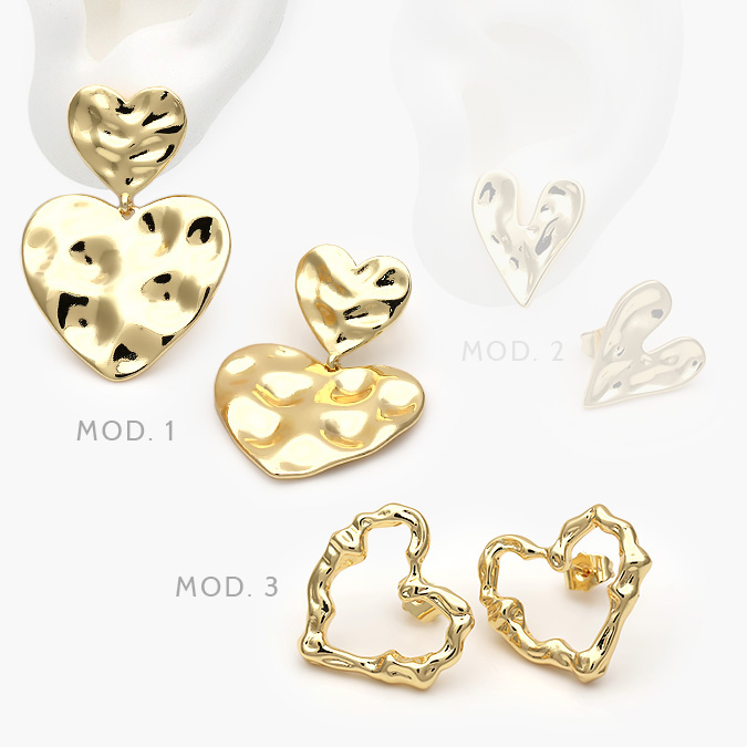 Aretes Corazones Chapa de Oro 554