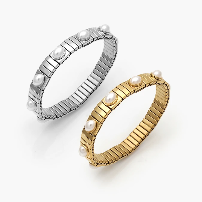 Brazalete Elástico Perla Acero Inoxidable 782
