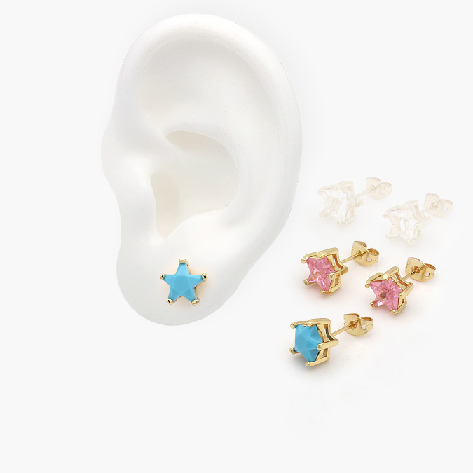 Broqueles Chapa de Oro Estrella Zirconias 0322