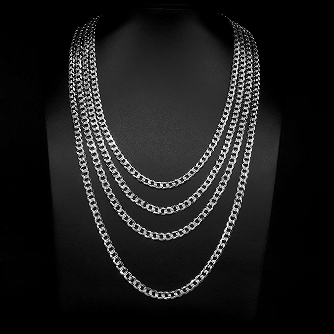 Cadena Cubana Americana Barbada Plata .925 7mm.