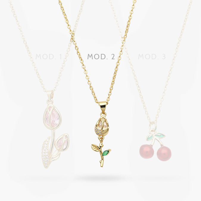 Collar Flores y Cereza Chapa de Oro 514