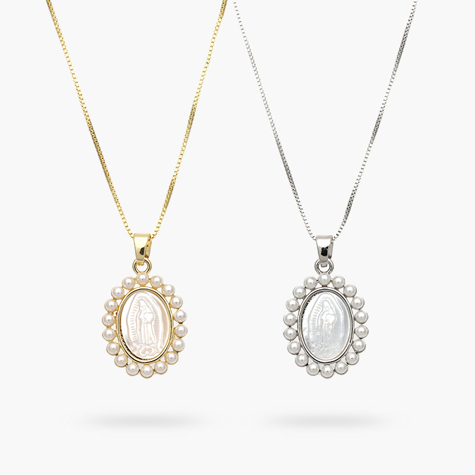 Collar Virgen Guadalupe Madre Perla Chapa de Oro 497