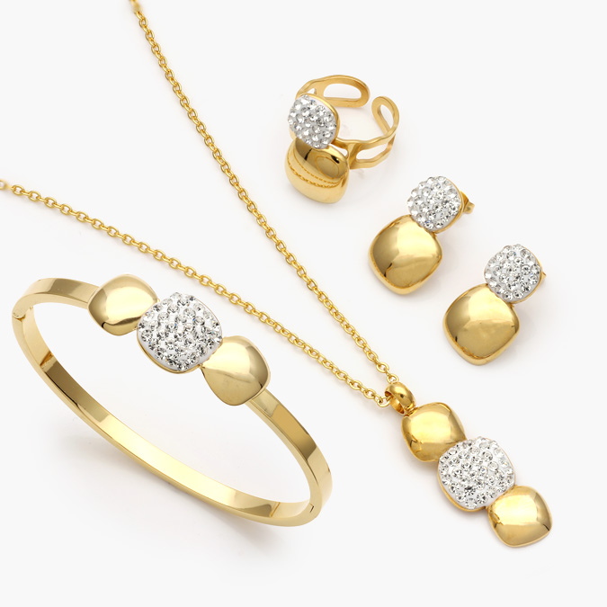 Juego 4pzs Piedra Blanca Acero Inoxidable 165