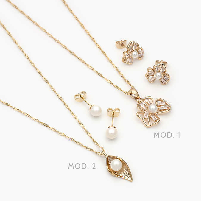 M-1: Cadena: 44 cm. + 5 cm. Dije: 19 mm. altura. Aretes: 12 mm. altura.
