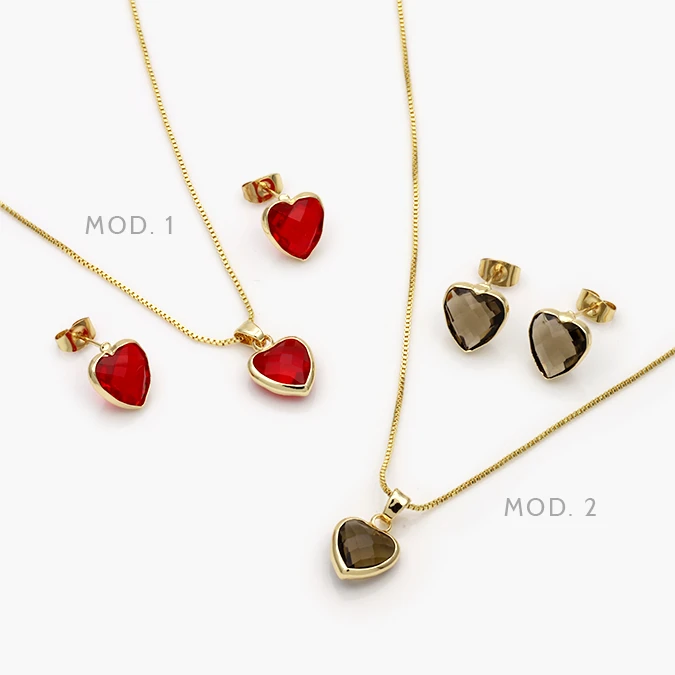 Juego Corazón Zirconia Chapa de Oro 79