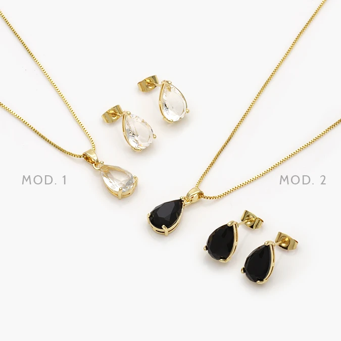 Juego Zirconia Gota Chapa de Oro 91