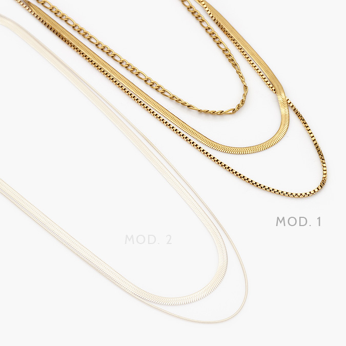 M-1: Cadena Superior: 39 cm. Cadena Media: 43 cm. Cadena Inferior: 49 cm. Grosor: 3 mm.