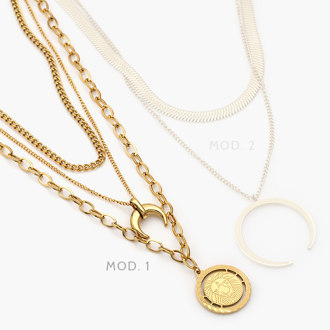 M-1: Cadena Superior: 40 cm. Cadena Inferior: 51 cm. Dije: 22 mm.