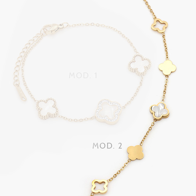 Pulso Flor Trébol Madre Perla Acero Inoxidable 618