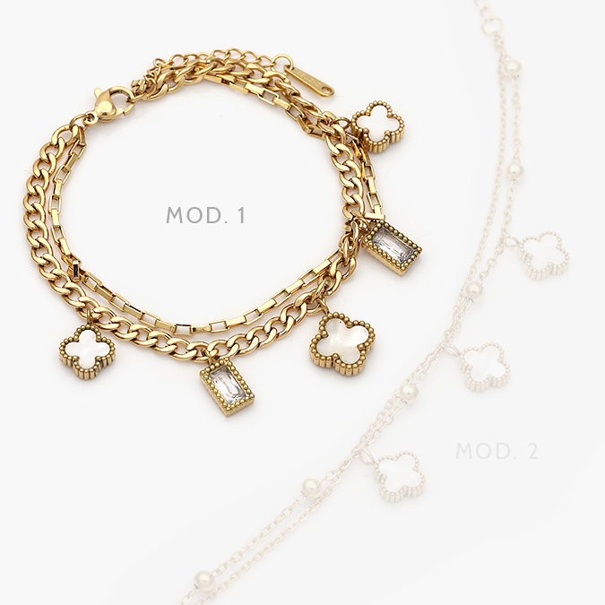 Pulso Flor Trébol Madre Perla Acero Inoxidable 618